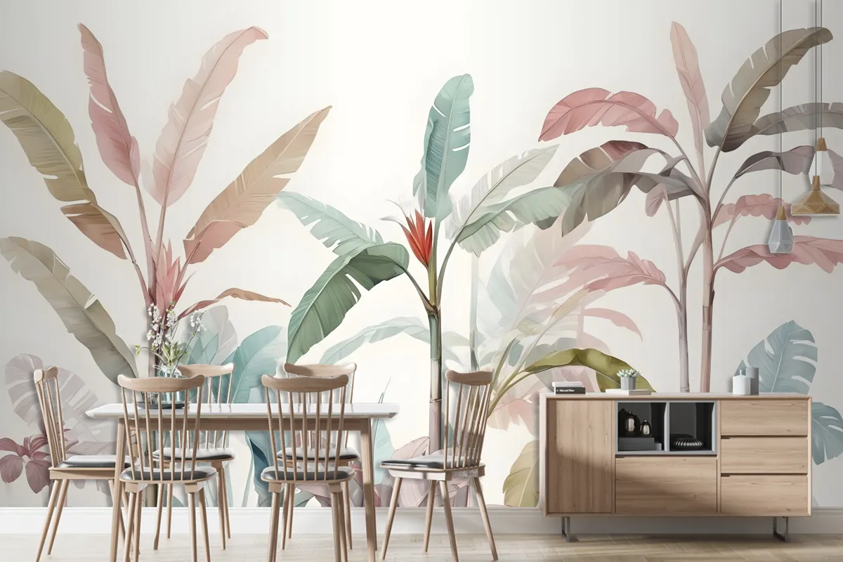 Renkli Tropikal Muz Ağacı Duvar Kağıdı