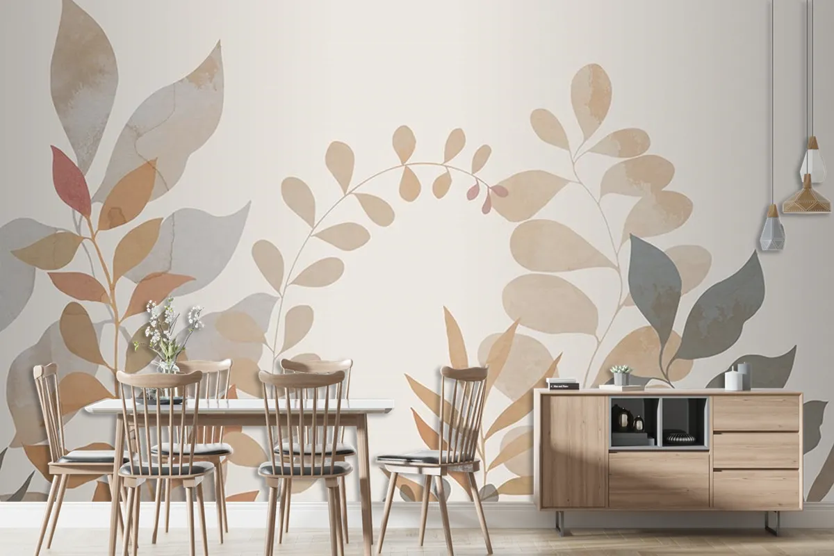 Renkli Yapraklar Duvar Kağıdı Tropikal Yaprak Desenli Duvar Kağıdı