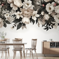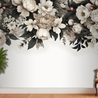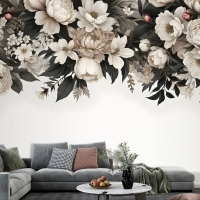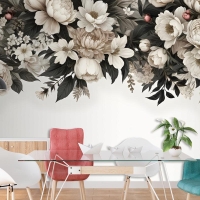 Retro Koyu Beyaz Çiçekler Duvar Kağıdı