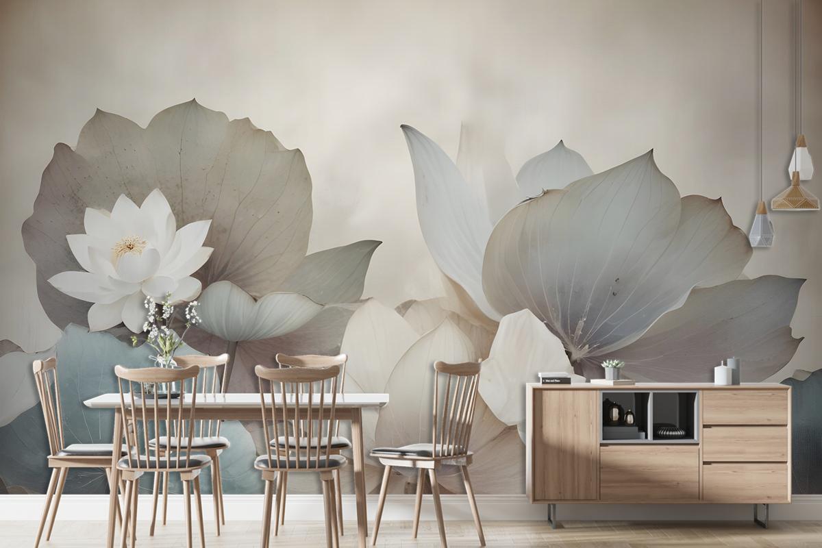 Retro Lotus Yaprağı Duvar Kağıdı Ile Vintage Çiçekli