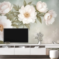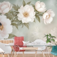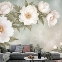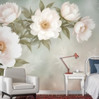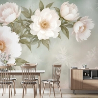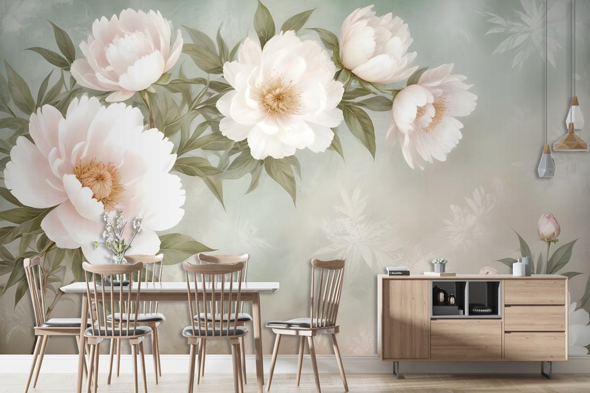 Retro Yağlıboya Beyaz Çiçekler Duvar Kağıdı