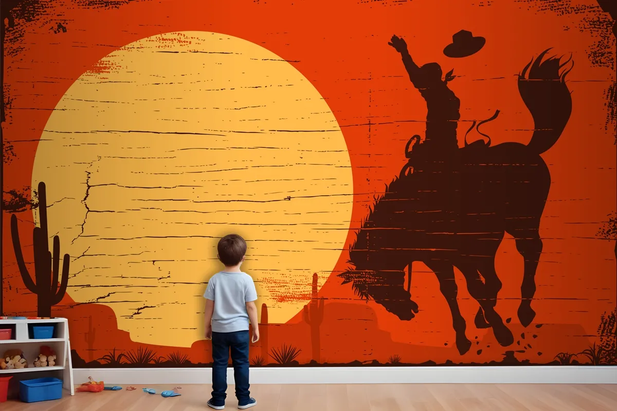 Rodeo Kovboy Vahşi Ata Biniyor Rodeo Kovboy Vahşi Ata Biniyor Çocuk Odası Duvar Kağıdı