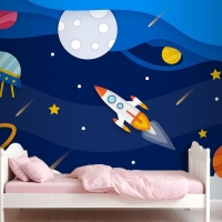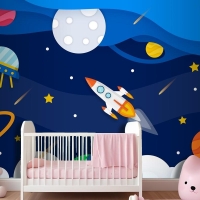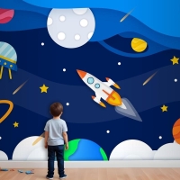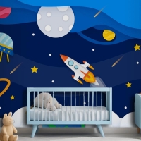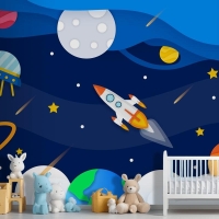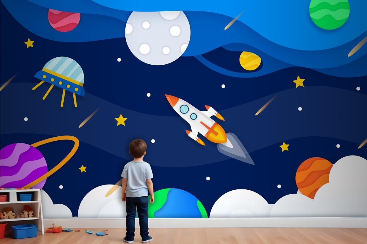 Roket Çocuk Odası Duvar Kağıdı Ile Kağıt Tarzı Galaksi