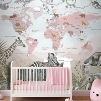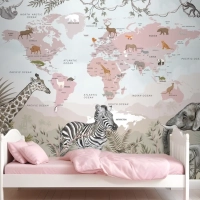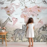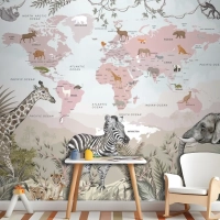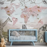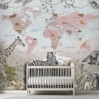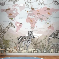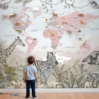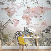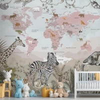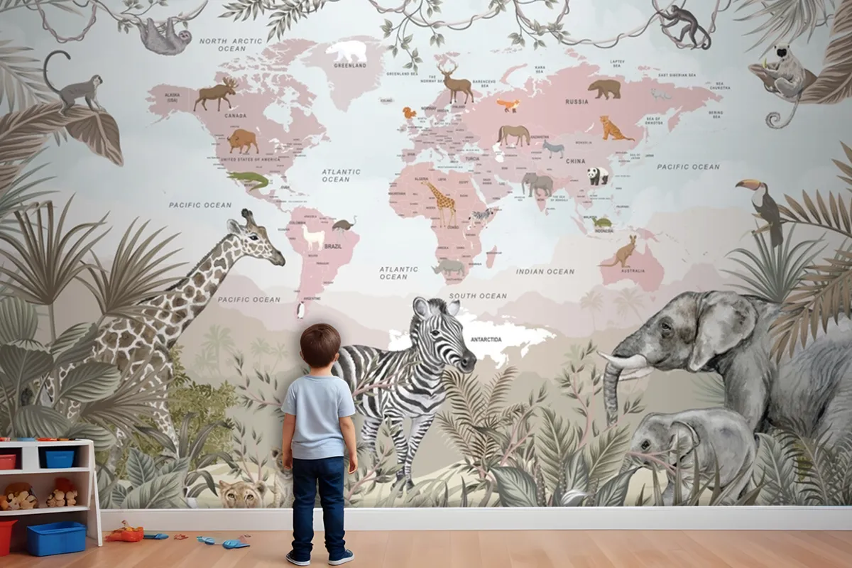 Safari Hayvanları Ve Çocuk Dünya Haritası Duvar Kağıdı