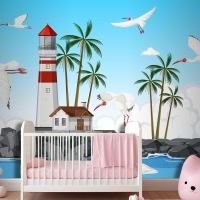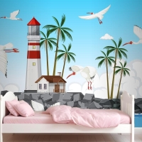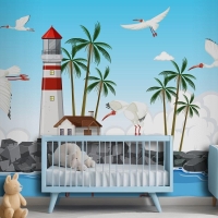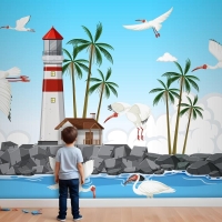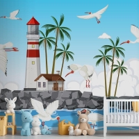 Sahilde Amerikan Beyaz Aynak Grubu Çocuk Odası Duvar Kağıdı