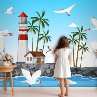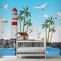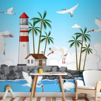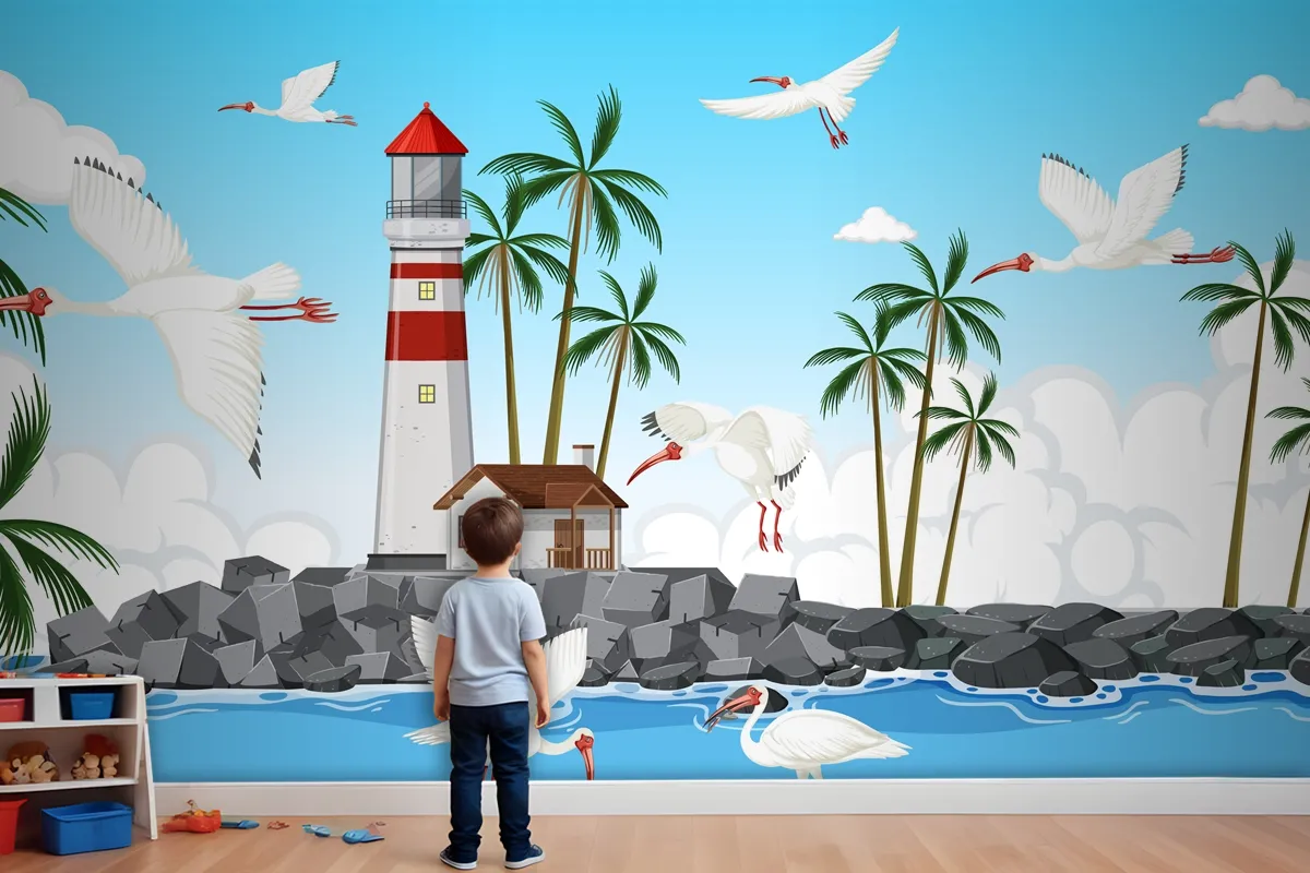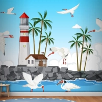 Sahilde Amerikan Beyaz Aynak Grubu Çocuk Odası Duvar Kağıdı
