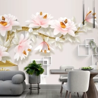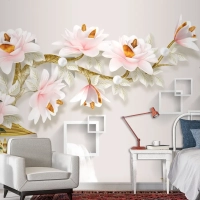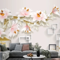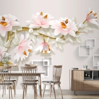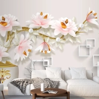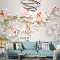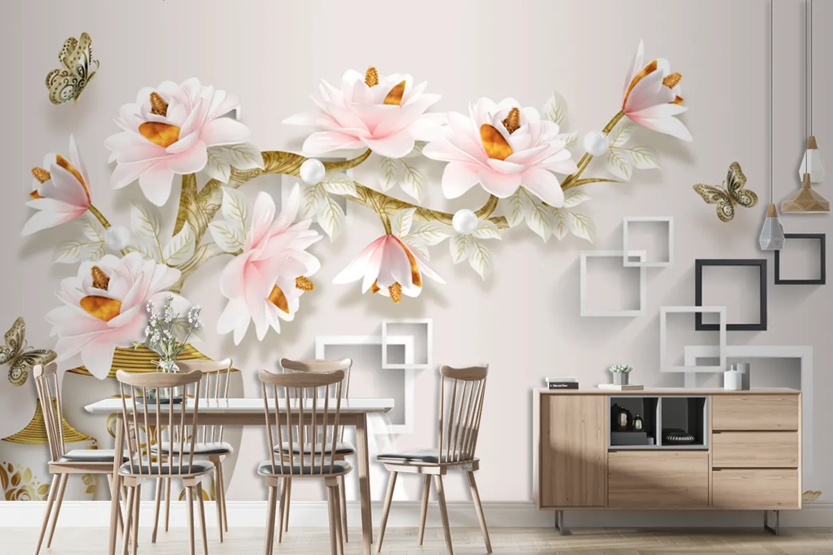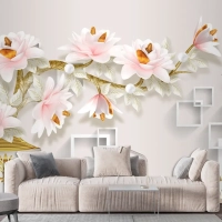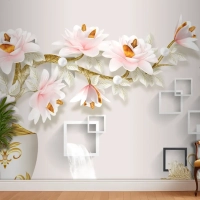 Saksıda Çiçek Ve Kare Aksesuarlar 3D Duvar Kağıdı