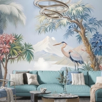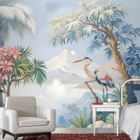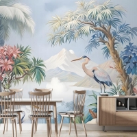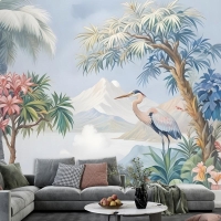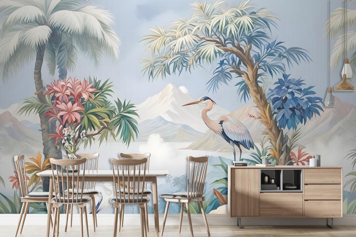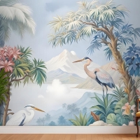 Sanat Resim Balıkçıl Kuşlar Duvar Kağıdı Ile Renkli Manzara
