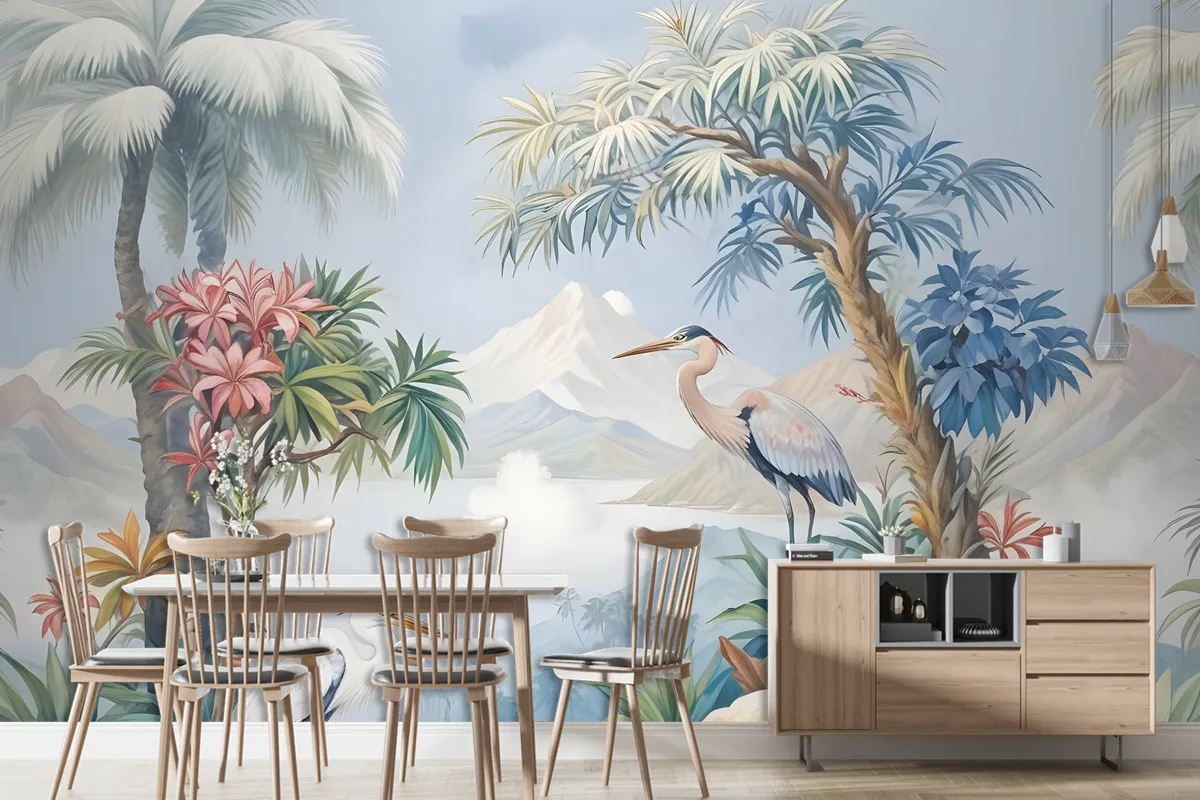 Sanat Resim Balıkçıl Kuşlar Duvar Kağıdı Ile Renkli Manzara
