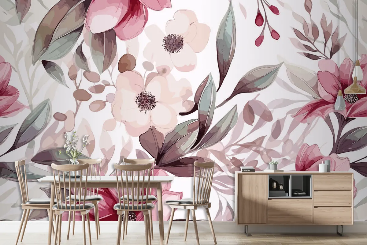 Sanatsal Elle Çizilmiş Çiçek Süsleme Desen Duvar Kağıdı