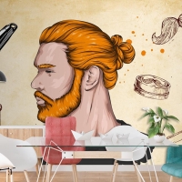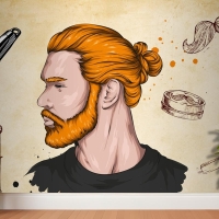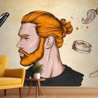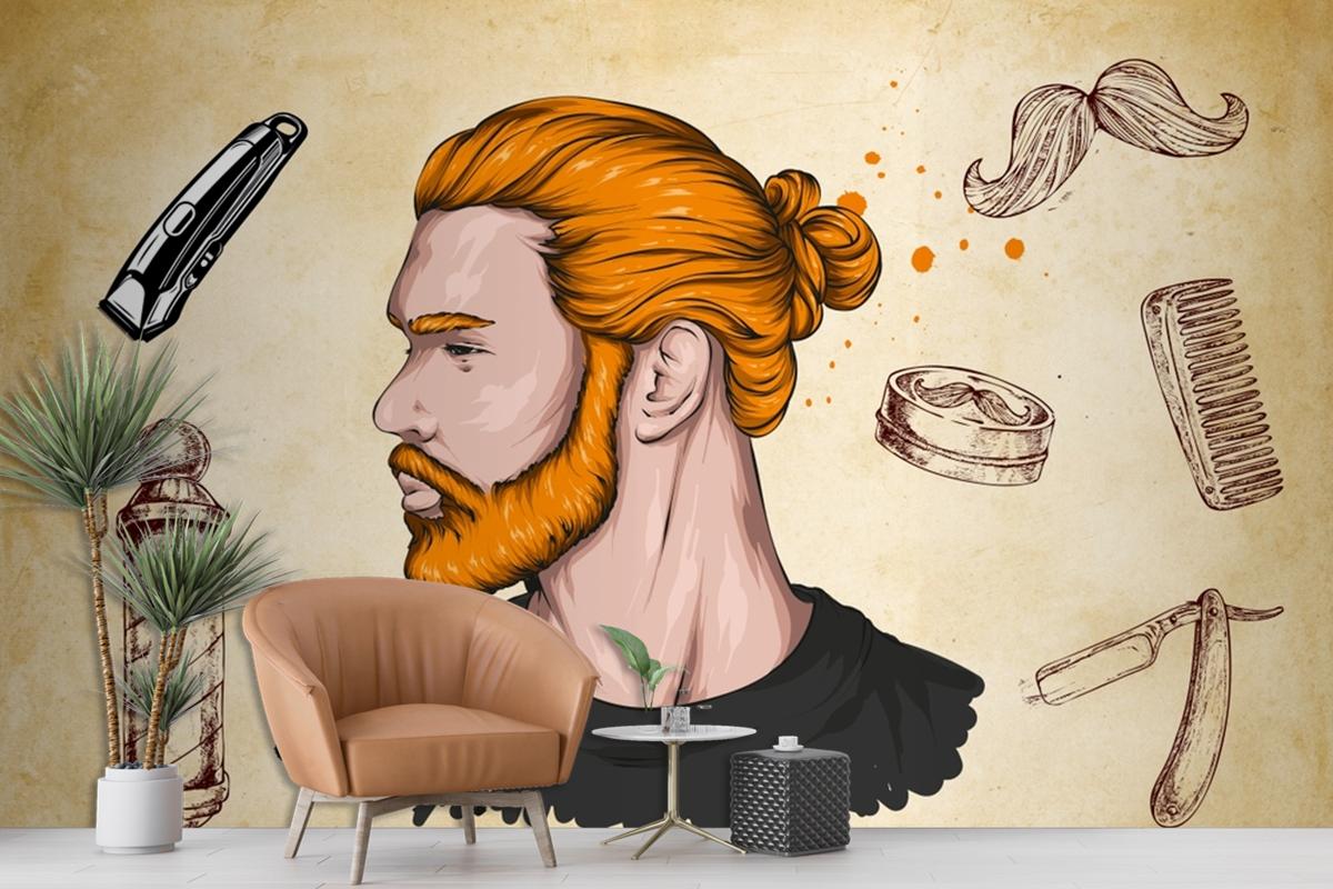 Sarı Arka Plan Turuncu Saçlı Kuaför Duvar Kağıdı