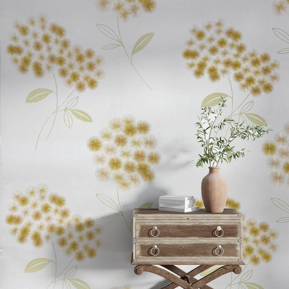 Sarı Çiçekli Simli Duvar Kağıdı 16 M2 81321