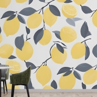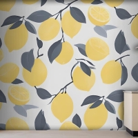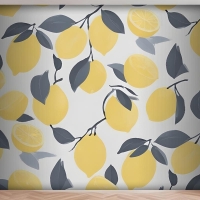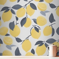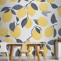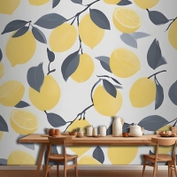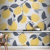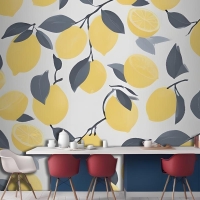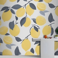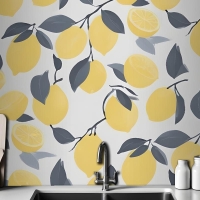 Sarı Limon Modern Tekrar Desenli Mutfak Duvar Kağıdı