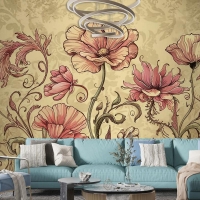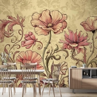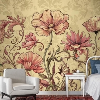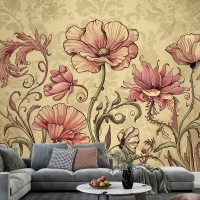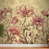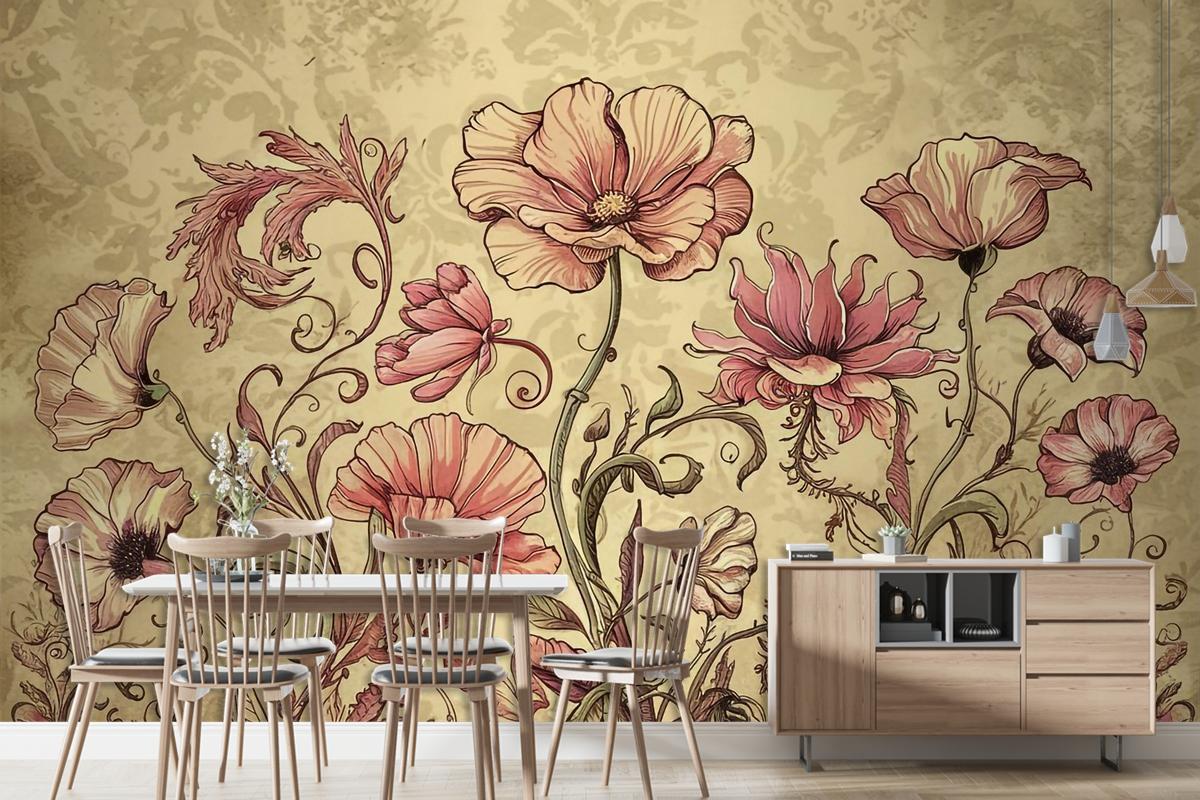 Sarı Zeminde Çiçekler Vintage Duvar Kağıdı
