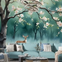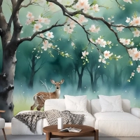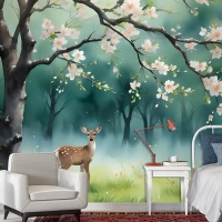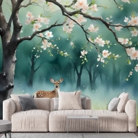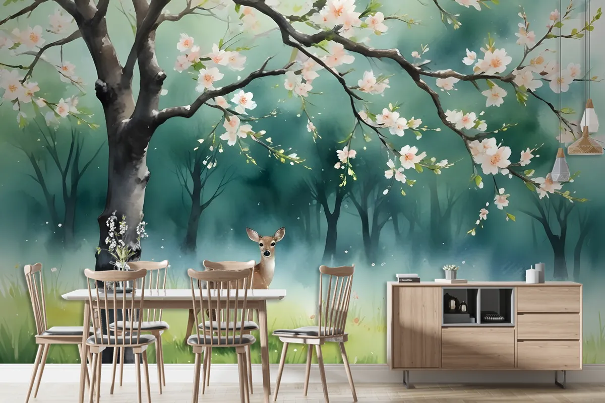 Şeftali Çiçeği Duvar Kağıdı Ile Suluboya Ormanı