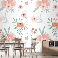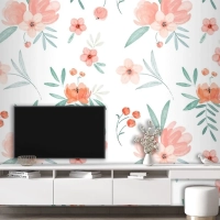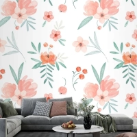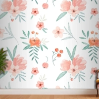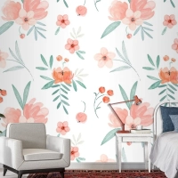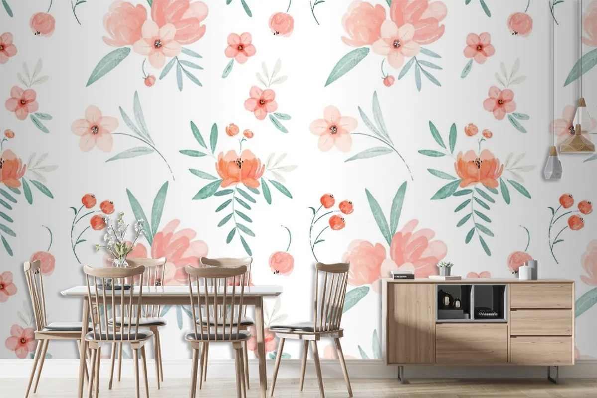 Şeftali Tonlarında El Boyalı Suluboya Çiçek Desenli Duvar Kağıdı