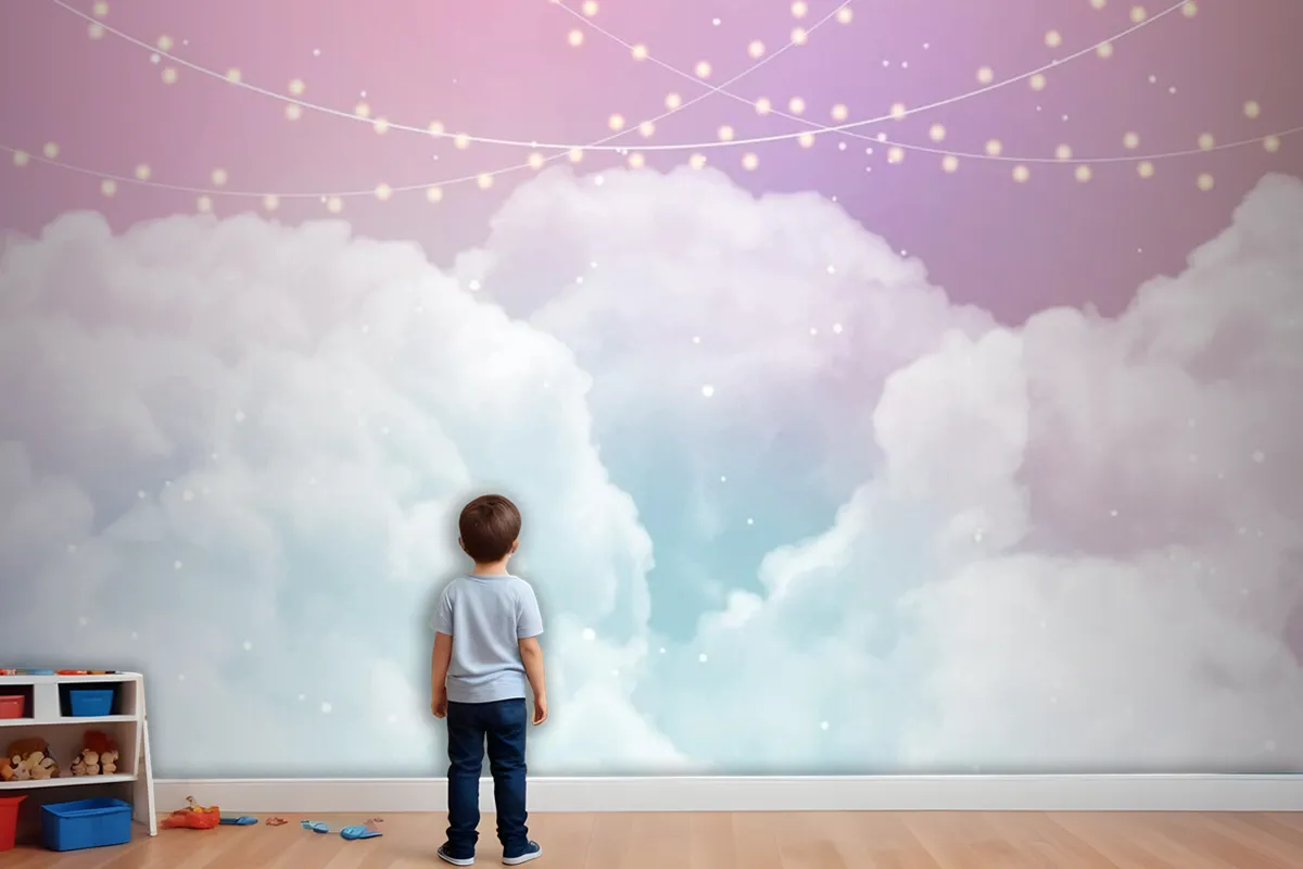 Şeker Pamuk Şeker Bulutlar Ve Yıldız Tasarım Çocuk Odası Duvar Kağıdı Ile Gökyüzü Arka Plan