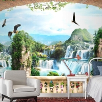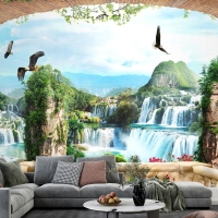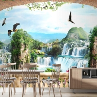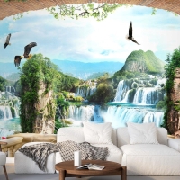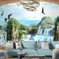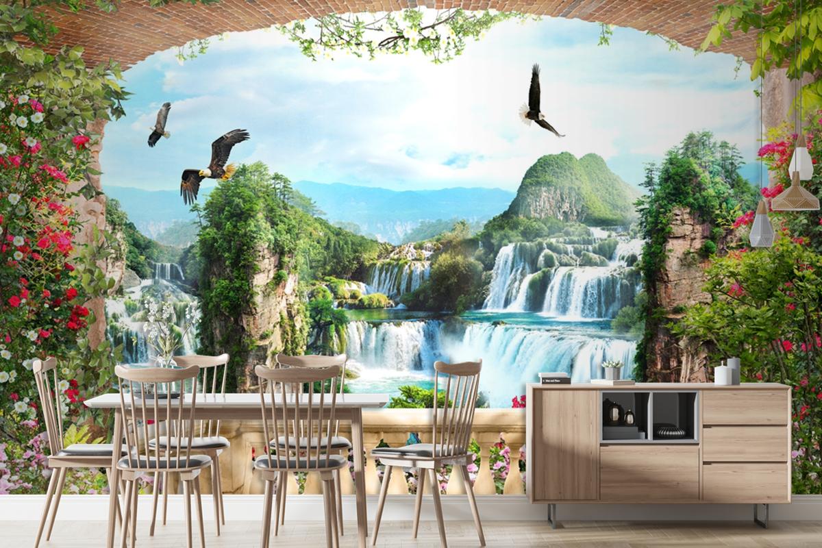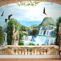 Şelalelerin Eşlik Ettiği Balkon Manzarası Duvar Kağıdı