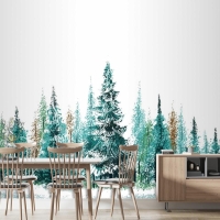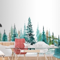 Şenlikli Kış Manzarası Noel Ağaçları Güzel Tatil Kartı Duvar Kağıdı