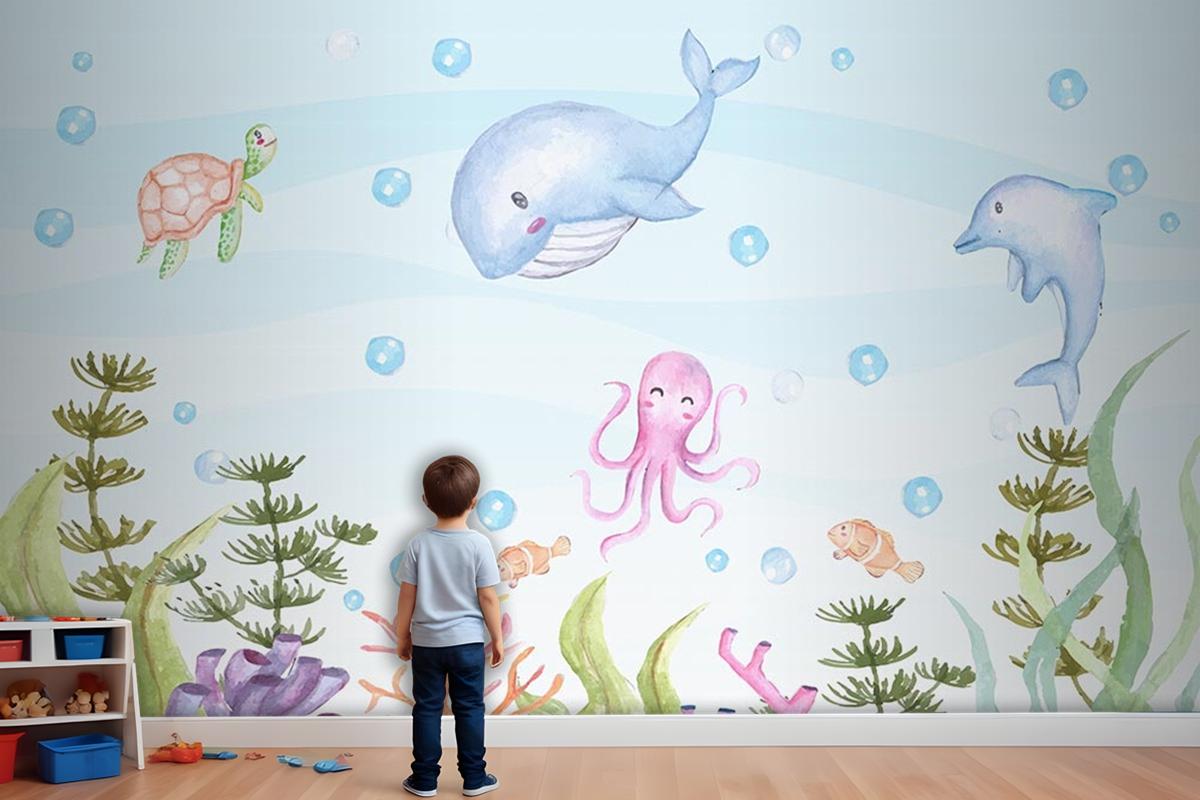 Sevimli Deniz Canlıları Balıklar Çocuk Odası Duvar Kağıdı