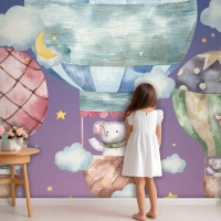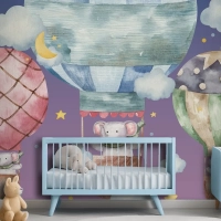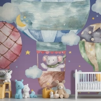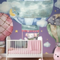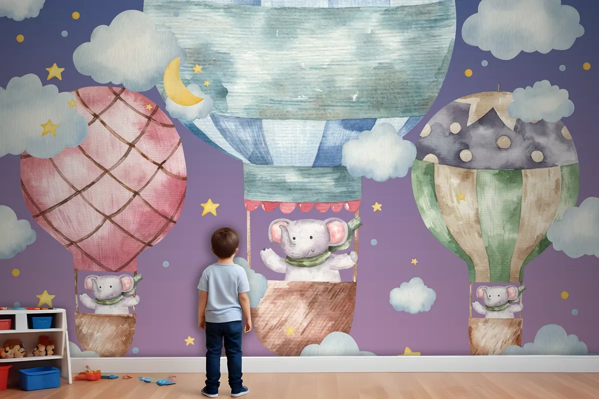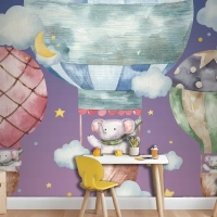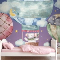 Sevimli Fil Renkli Balonların Üzerinde Uçar Çocuk Odası Duvar Kağıdı