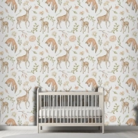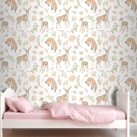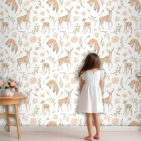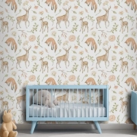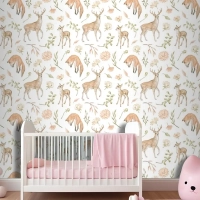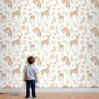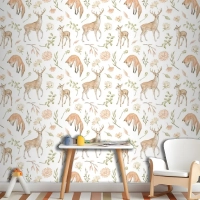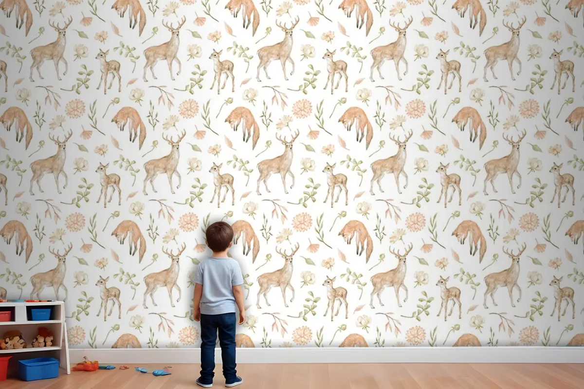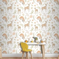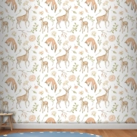 Sevimli Geyikler Ve Yapraklar Çocuk Odası Duvar Kağıdı