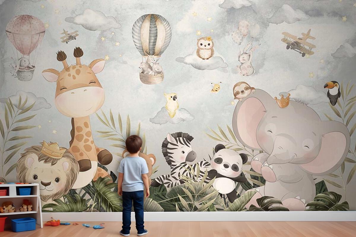 Sevimli Hayvanların Neşeli Dünyası Çocuk Odası Duvar Kağıdı