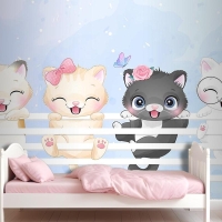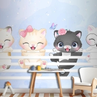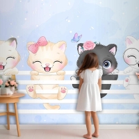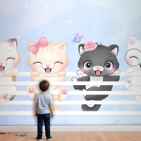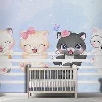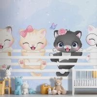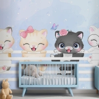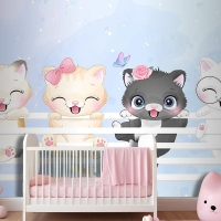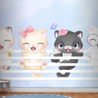 Sevimli Kedicikler Çocuk Odası Duvar Kağıdı