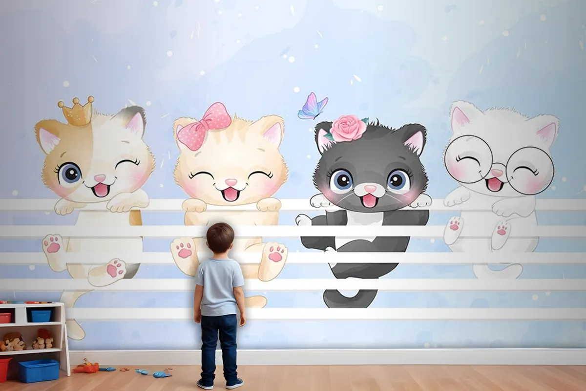 Sevimli Kedicikler Çocuk Odası Duvar Kağıdı