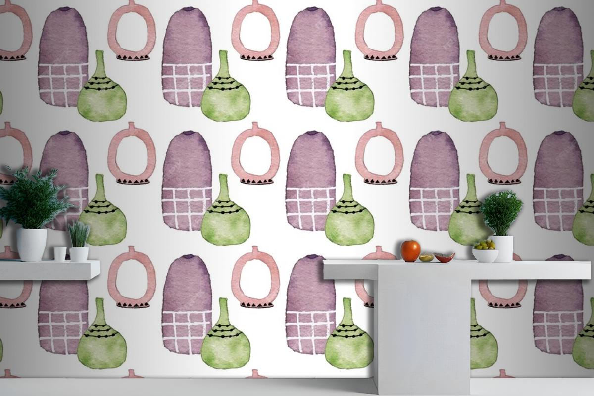 Sevimli Modern Seramik Çiçek Vazo Suluboya Dikişsiz Desen Mutfak Duvar Kağıdı