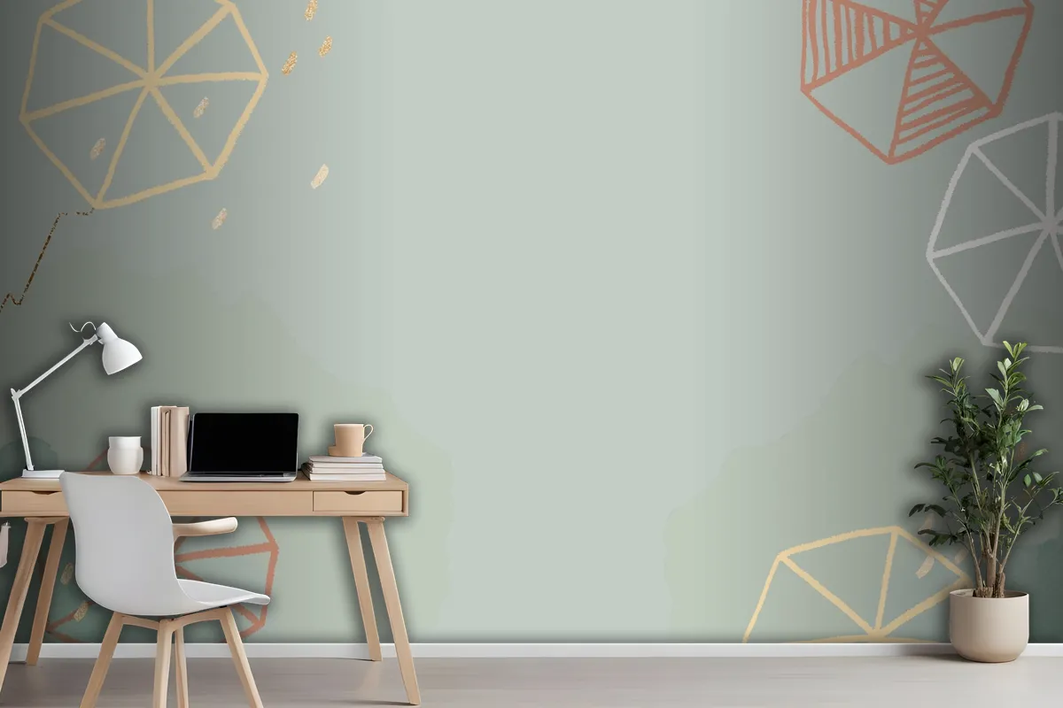 Sevimli Şemsiye Ofis Duvar Kağıdı Yeşil Yağmurlu Sezon Arka Planı