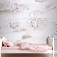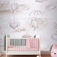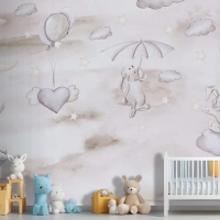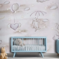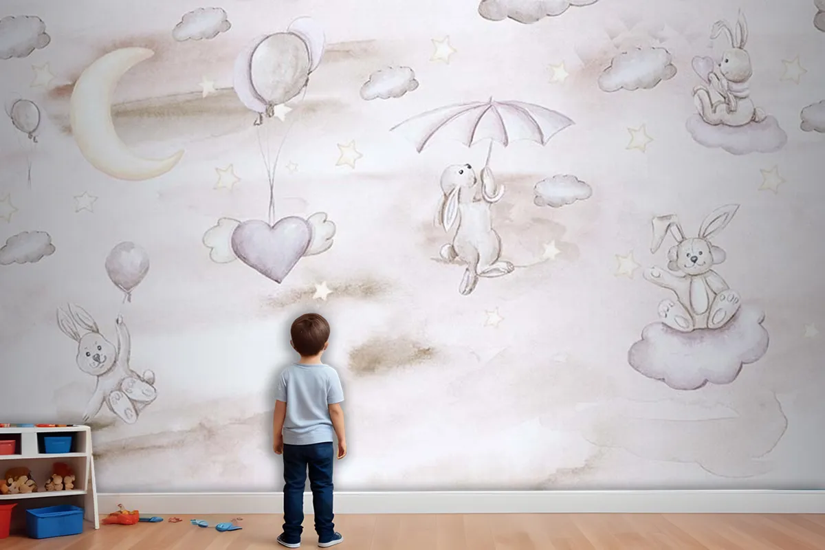 Sevimli Tavşanlar Bulutların Üzerinde Çocuk Odası Duvar Kağıdı