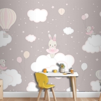 Sevimli Tavşanlar Ve Bulutlar Çocuk Odası Duvar Kağıdı