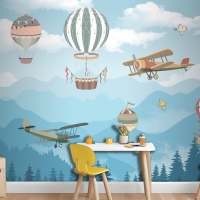 Sıcak Hava Balonları Ve Dağlar Çocuk Odası Duvar Kağıdı