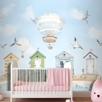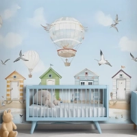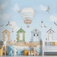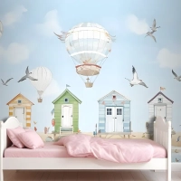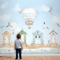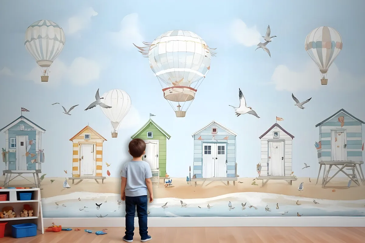 Sıcak Hava Balonlu Suluboya Çocuk Plaj Evi