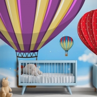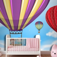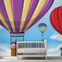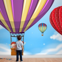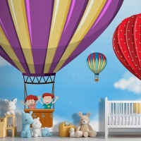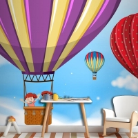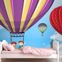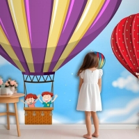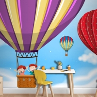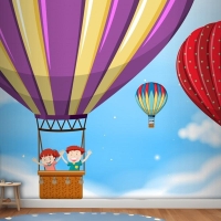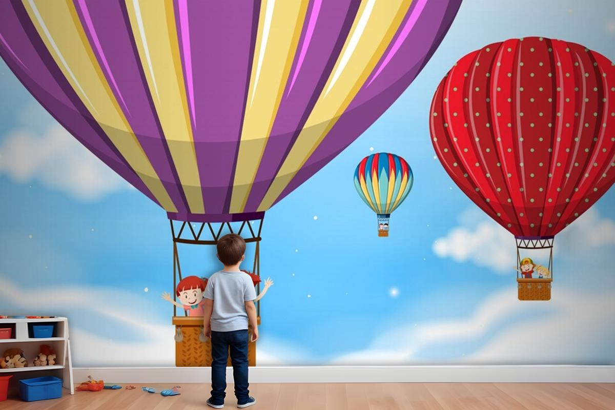 Sıcak Hava Balonuna Binen Çocuklar Çocuk Odası Duvar Kağıdı