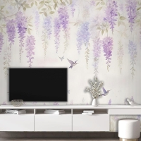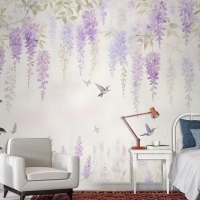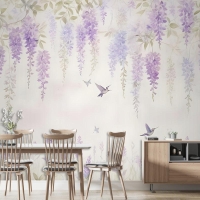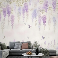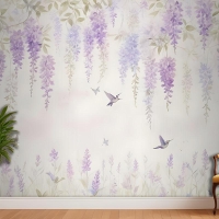 Sinek Kuşları Duvar Kağıdı Ile Suluboya Asılı Wisteria Çiçekleri