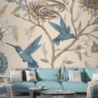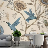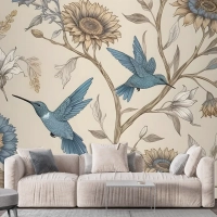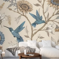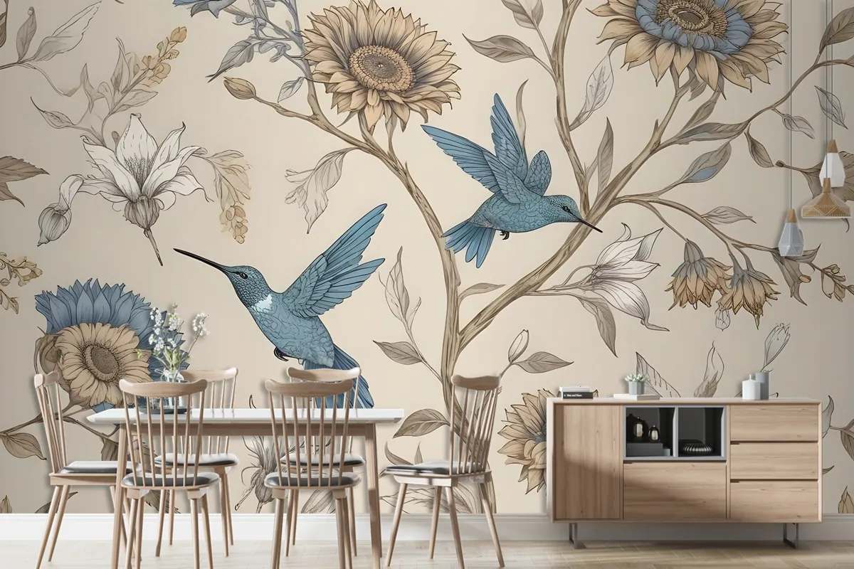 Sinek Kuşu Duvar Kağıdı Ile Vintage Çiçek