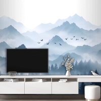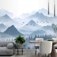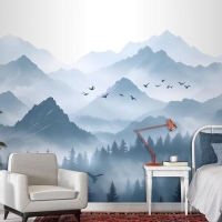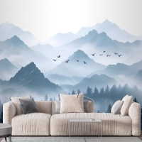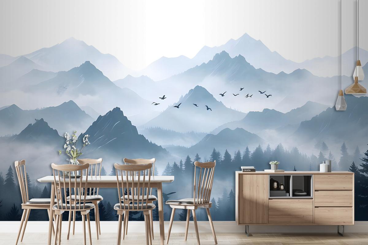 Sisli Orman Duvar Kağıdı Ile Tek Renkli Dağ Manzarası