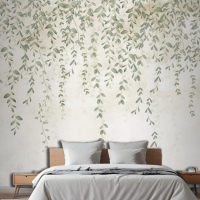 Sisli Ormanda Tropikal Yaprak Tasarımı Yatak Odası Duvar Kağıdı