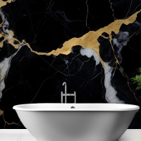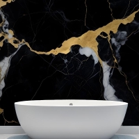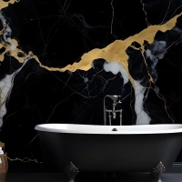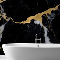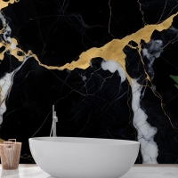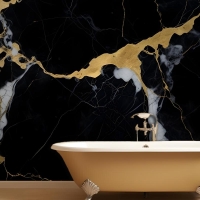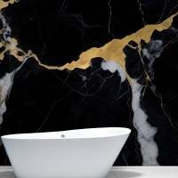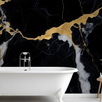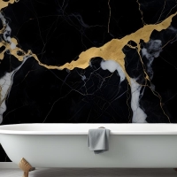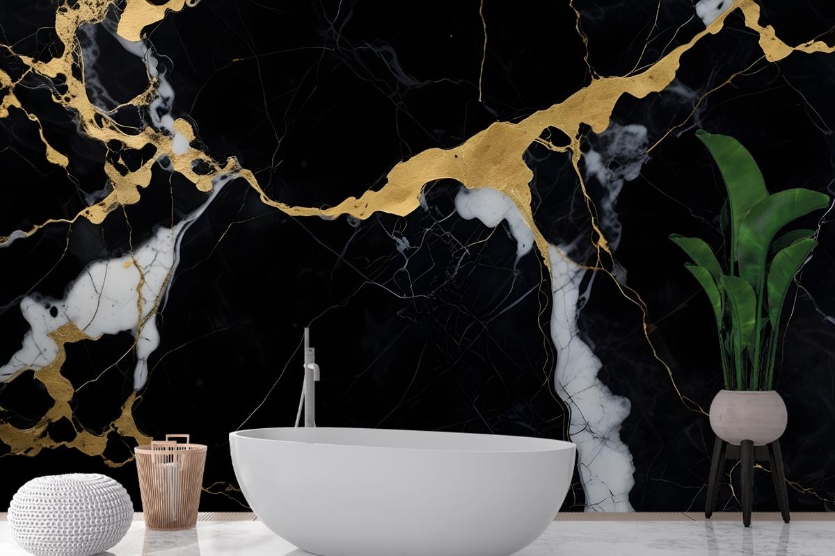 Siyah & Altın Koyu Mermer Efektli Banyo Duvar Kağıdı