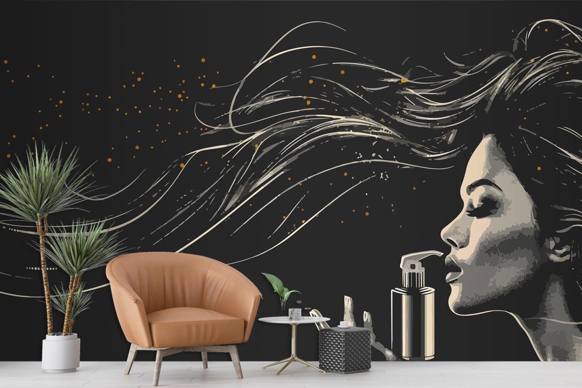 Siyah Arkaplanda Saç Spreyi Uygulayan Zarif Kadın Kuaför Duvar Kağıdı