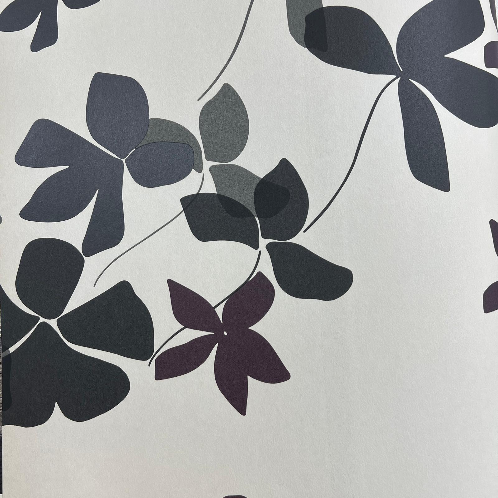 Siyah Beyaz Çiçek Desenli Duvar Kağıdı 112025