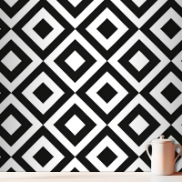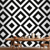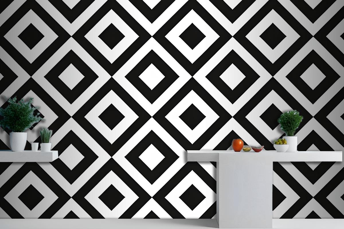 Siyah & Beyaz Elmas Desenli Mutfak Duvar Kağıdı