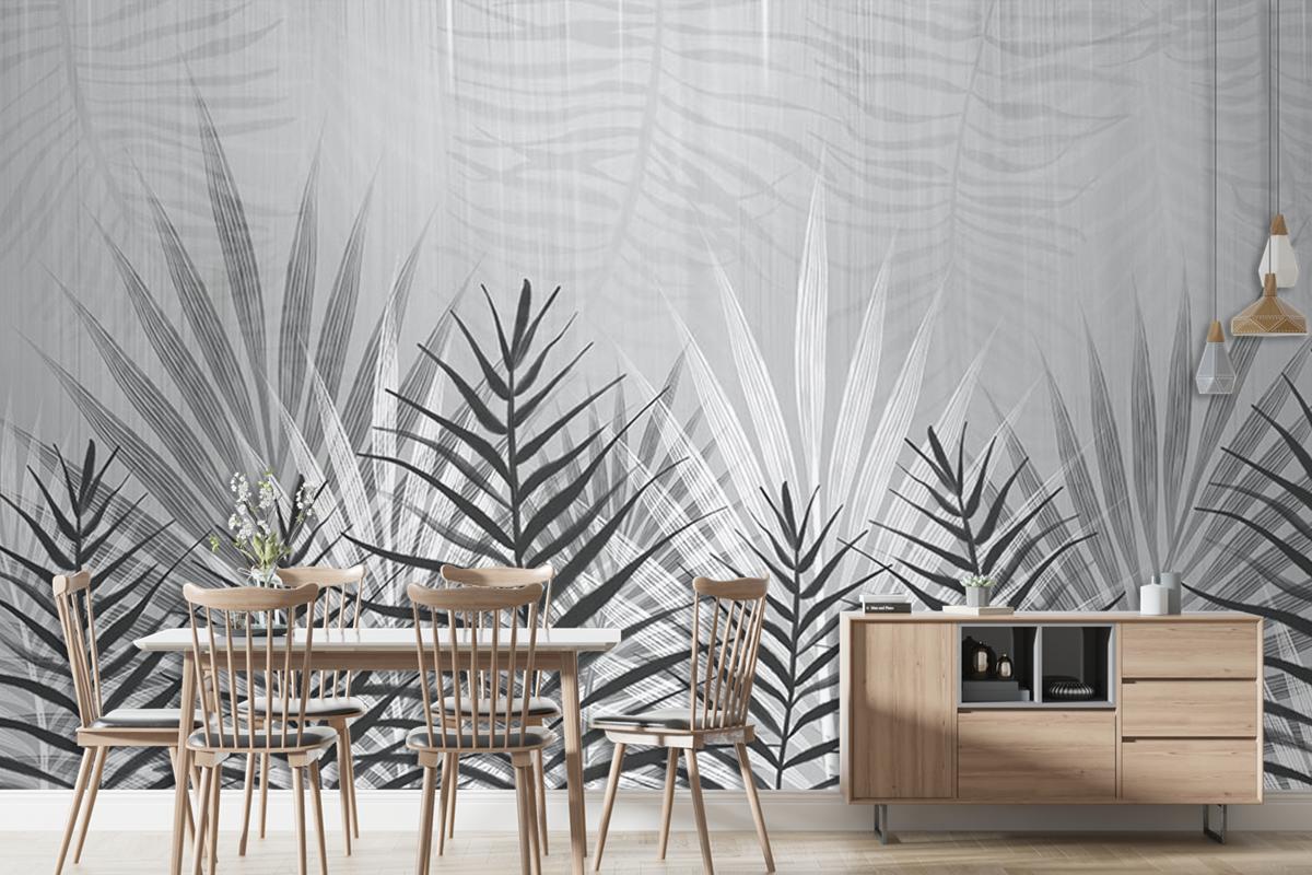 Siyah Beyaz Ince Yapraklar Duvar Kağıdı