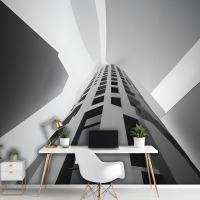 Siyah Beyaz Mimari Birinci Şahıs Perspektif Duvar Kağıdı