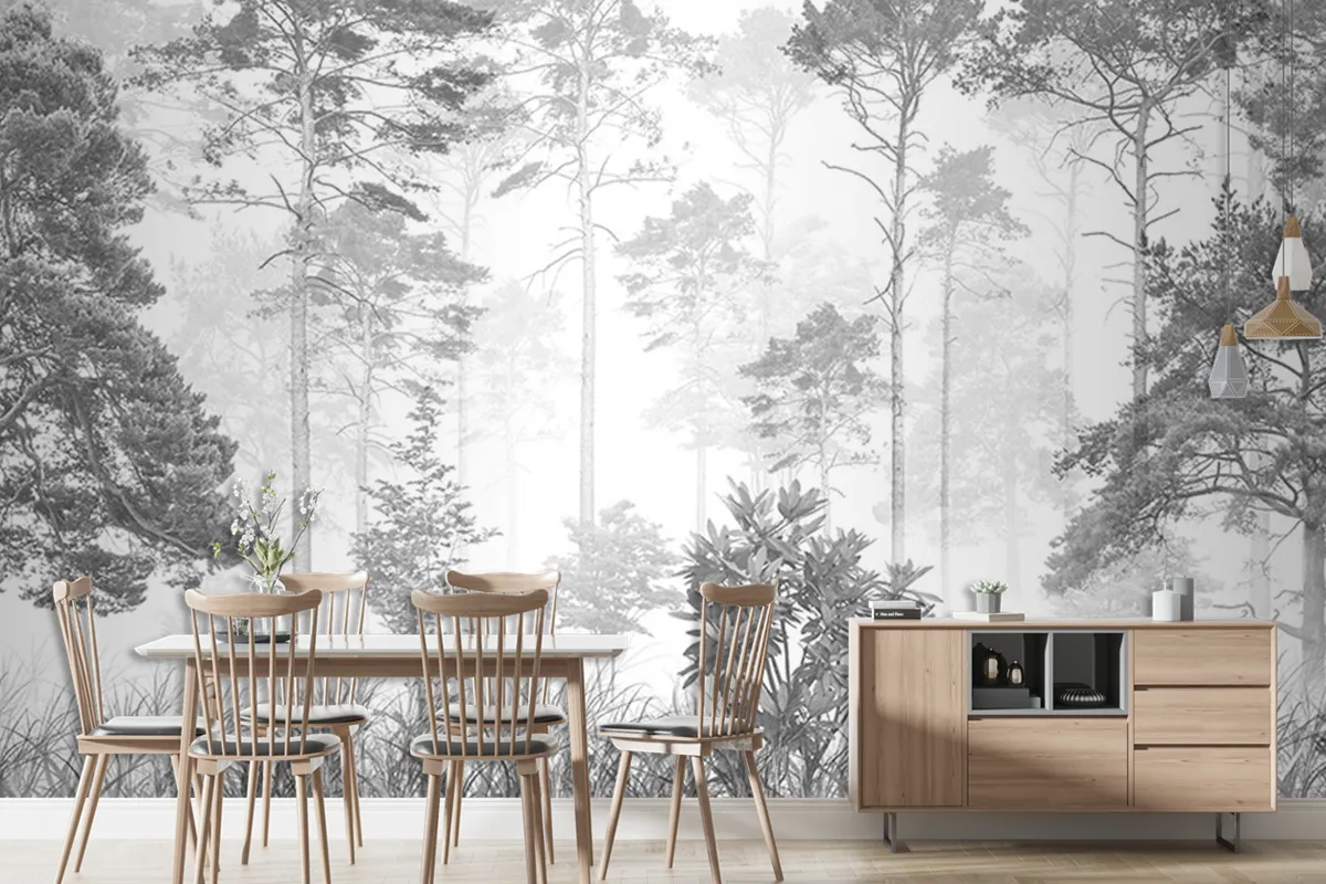 Siyah Beyaz Tropikal Orman Duvar Kağıdı