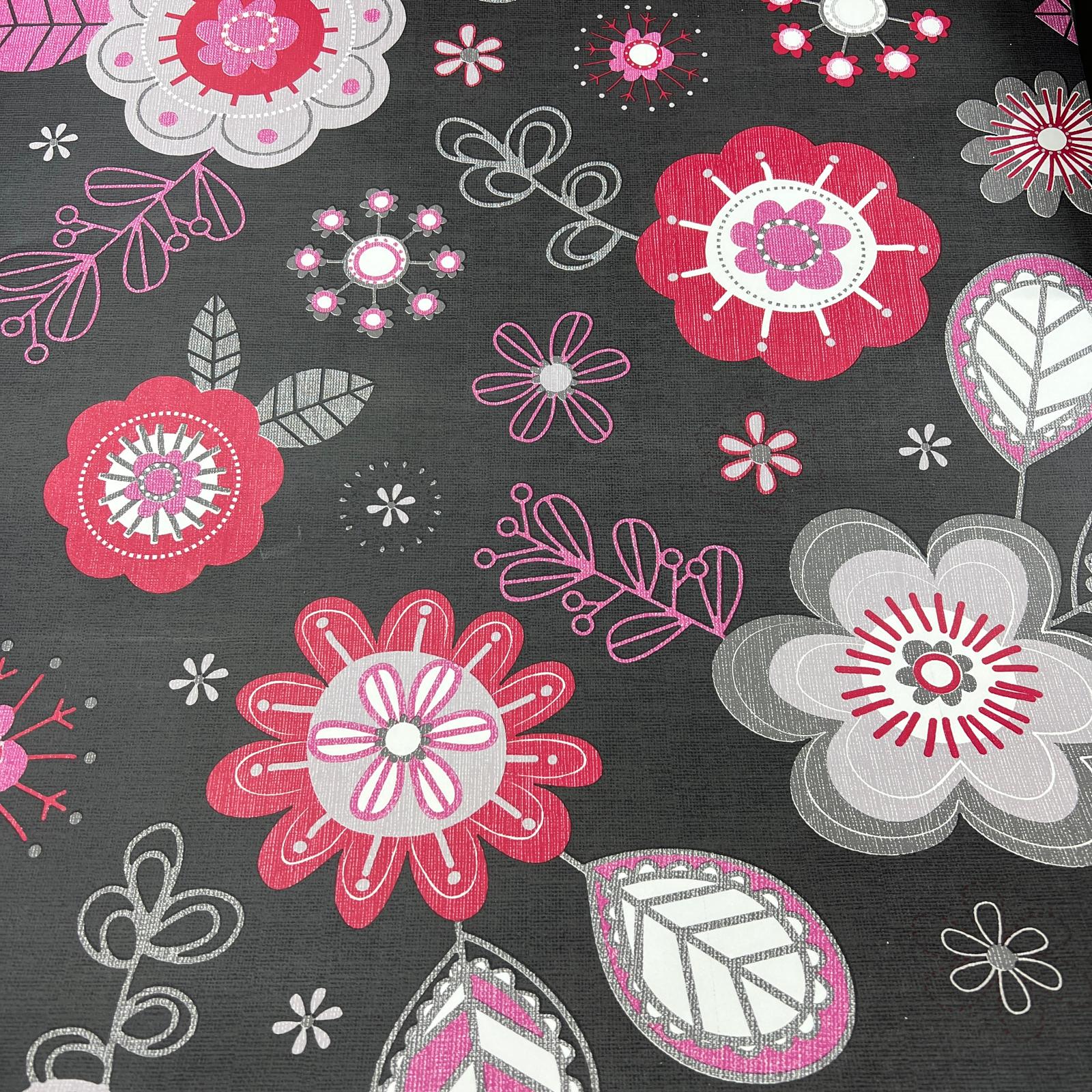 Siyah Pembe Çiçek Desen Duvar Kağıdı 12058853
