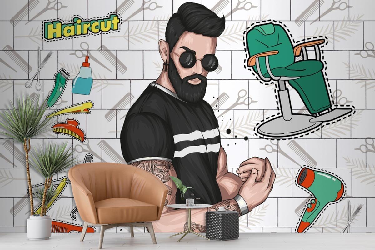 Siyah Tişörtlü Kaslı Erkek Berber Duvar Kağıdı