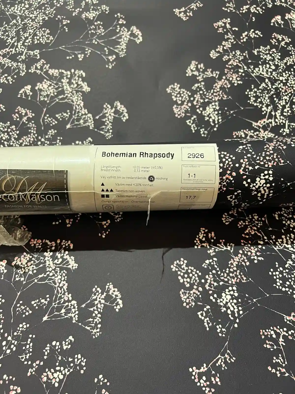 Siyah Üzerine Beyaz Çiçekler Çiçek Desen Ucuz Duvar Kağıdı 2926